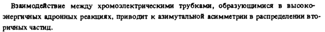 Взаимодействие между хромоэлектрическими трубками, образующимися в высокоэнергичных адронных реакциях, приводит к азимутальной асимметрии в распределении в то ричных частиц.