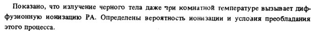 Показано, что излучение черного тела даже чри комнатной температуре вызывает диффузионную ионизацию РА. Определены вероятность ионизации и условия преобладания этого процесса.