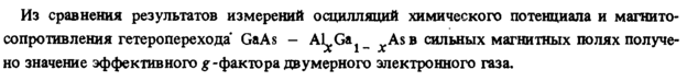 Из сравнения результатов измерений осцилляций химического потенциала и магнито-сопротивления гетероперехода* GaAs Al^Ga^ ^.As в сильных магнитных полях получено значение эффективного #-фактора двумерного электронного газа.