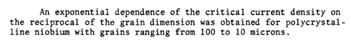 An exponential dependence of the critical current density on the reciprocal of the grain dimension was obtained for polycrystal-line niobium with grains ranging from 100 to 10 microns.