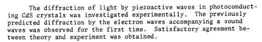 The diffraction of light by piezoactive waves in photoconducting CdS crystals was investigated experimentally. The previously predicted diffraction by the electron waves accompanying a sound waves was observed for the first time. Satisfactory agreement between theory and experiment was obtained.