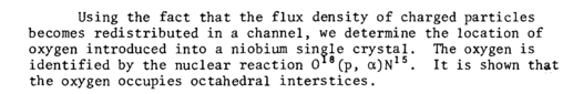 Using the fact that the flux density of charged particles becomes redistributed in a channel, we determine the location of oxygen introduced into a niobium single crystal. The oxygen is identified by the nuclear reaction 0 (ρ, a)N15. It is shown that the oxygen occupies octahedral interstices.