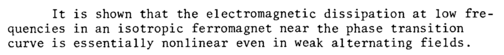 It is shown that the electromagnetic dissipation at low frequencies in an isotropic ferromagnet near the phase transition curve is essentially nonlinear even in weak alternating fields.