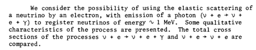 We consider the possibility of using the elastic scattering of a neutrino by an electron, with emission of a photon (v + e ν + e + γ) to register neutrinos of energy ъ 1 MeV. Some qualitative characteristics of the process are presented. The total cross sections of the processes v + e+ v + e+ γ and ν + e -*· ν + e are compared.