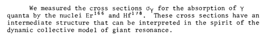 We measured the cross sections Oy for the absorption of γ quanta by the nuclei Er166 and Hf178. These cross sections have an intermediate structure that can be interpreted in the spirit of the dynamic collective model of giant resonance.