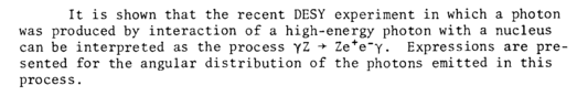 It is shown that the recent DESY experiment in which a photon was produced by interaction of a high-energy photon with a nucleus can be interpreted as the process γΖ Ζβ+β"γ. Expressions are presented for the angular distribution of the photons emitted in this process.