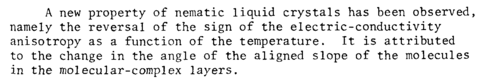 A new property of nematic liquid crystals has been observed, namely the reversal of the sign of the electric-conductivity anisotropy as a function of the temperature. It is attributed to the change in the angle of the aligned slope of the molecules in the molecular-complex layers.
