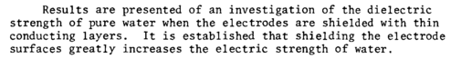 Increase of dielectric strength of water in a system with "diffusion" electrodes