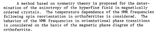 A method based on symmetry theory is proposed for the determination of the anisotropy of the hyperfine field in magnetically ordered crystals. The temperature dependence of the NMR frequencies following spin reorientation in orthoferrites is considered. The behavior of the NMR frequencies in orientational phase transitions is considered on the basis of the magnetic phase diagram of the orthoferrite.