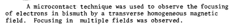 A microcontact technique was used to observe the focusing of electrons in bismuth by a transverse homogeneous magnetic field. Focusing in multiple fields was observed.