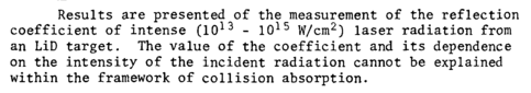 Results are presented of the measurement of the reflection coefficient of intense (1013 1015 W/cm2) laser radiation from an LiD target. The value of the coefficient and its dependence on the intensity of the incident radiation cannot be explained within the framework of collision absorption.