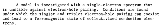 A model is investigated with a single-electron spectrum that is unstable against electron-hole pairing. Conditions are found under which the singlet and triplet electron-hole pairing can coexist and lead to a ferromagnetic state of collectivized conduction electrons .