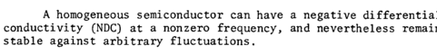 A homogeneous semiconductor can have a negative differentia conductivity (NDC) at a nonzero frequency, and nevertheless remaii stable against arbitrary fluctuations.
