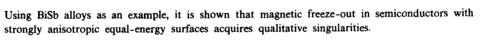 Using BiSb alloys as an example, it is shown that magnetic freeze-out in semiconductors with strongly anisotropic equal-energy surfaces acquires qualitative singularities.