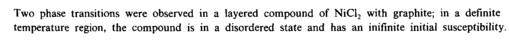 Two phase transitions were observed in a layered compound of NiCl2 with graphite; in a definite temperature region, the compound is in a disordered state and has an inifinite initial susceptibility.