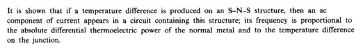 It is shown that if a temperature difference is produced on an S-N-S structure, then an ac component of current appears in a circuit containing this structure; its frequency is proportional to the absolute differential thermoelectric power of the normal metal and to the temperature difference on the junction.