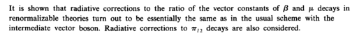 It is shown that radiative corrections to the ratio of the vector constants of β and μ decays in renormalizable theories turn out to be essentially the same as in the usual scheme with the intermediate vector boson. Radiative corrections to ttn decays are also considered.