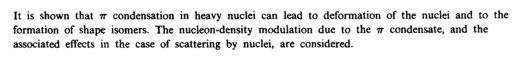 It is shown that π condensation in heavy nuclei can lead to deformation of the nuclei and to the formation of shape isomers. The nucleon-density modulation due to the π condensate, and the associated effects in the case of scattering by nuclei, are considered.