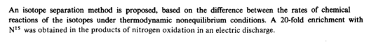 An isotope separation method is proposed, based on the difference between the rates of chemical reactions of the isotopes under thermodynamic nonequilibrium conditions. A 20-fold enrichment with N15 was obtained in the products of nitrogen oxidation in an electric discharge.