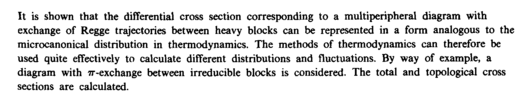 It is shown that the differential cross section corresponding to a multiperipheral diagram with exchange of Regge trajectories between heavy blocks can be represented in a form analogous to the microcanonical distribution in thermodynamics. The methods of thermodynamics can therefore be used quite effectively to calculate different distributions and fluctuations. By way of example, a diagram with 7r-exchange between irreducible blocks is considered. The total and topological cross sections are calculated.