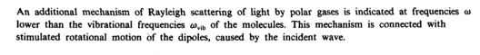 An additional mechanism of Rayleigh scattering of light by polar gases is indicated at frequencies ω lower than the vibrational frequencies ovib of the molecules. This mechanism is connected with stimulated rotational motion of the dipoles, caused by the incident wave.