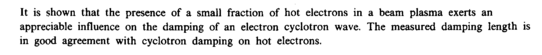 It is shown that the presence of a small fraction of hot electrons in a beam plasma exerts an appreciable influence on the damping of an electron cyclotron wave. The measured damping length is in good agreement with cyclotron damping on hot electrons.