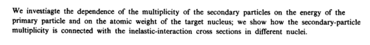 We investiagte the dependence of the multiplicity of the secondary particles on the energy of the primary particle and on the atomic weight of the target nucleus; we show how the secondary-particle multiplicity is connected with the inelastic-interaction cross sections in different nuclei.