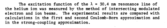Experirnental investigation of the excitation of the helium-ion resonance line in electron-ion collisions