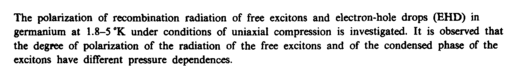 The polarization of recombination radiation of free excitons and electron-hole drops (EHD) in germanium at 1.8-5 *K under conditions of uniaxial compression is investigated. It is observed that the degree of polarization of the radiation of the free excitons and of the condensed phase of the excitons have different pressure dependences.