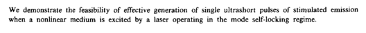 We demonstrate the feasibility of effective generation of single ultrashort pulses of stimulated emission when a nonlinear medium is excited by a laser operating in the mode self-locking regime.