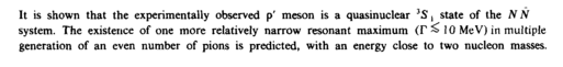 It is shown that the experimentally observed p' meson is a quasinuclear 3S j state of the Ν N system. The existence of one more relatively narrow resonant maximum (Γ ^ 10 MeV) in multiple generation of an even number of pions is predicted, with an energy close to two nucleon masses.