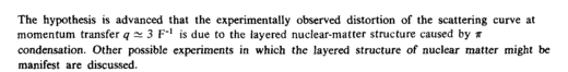 The hypothesis is advanced that the experimentally observed distortion of the scattering curve at momentum transfer q ~ 3 F'1 is due to the layered nuclear-matter structure caused by it condensation. Other possible experiments in which the layered structure of nuclear matter might be manifest are discussed.