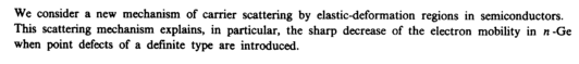 We consider a new mechanism of carrier scattering by elastic-deformation regions in semiconductors. This scattering mechanism explains, in particular, the sharp decrease of the electron mobility in η -Ge when point defects of a definite type are introduced.