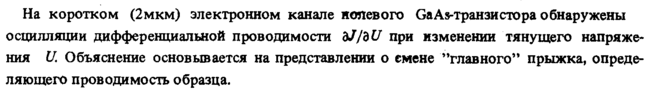 На коротком (2мкм) электронном канале нолевого GaAs-транзистора обнаружены осцилляции дифференциальной проводимости bJ/bU при изменении тянущего напряжения U. Объяснение основывается на представлении о смене "главного" прыжка, определяющего проводимость образца.