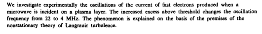 We investigate experimentally the oscillations of the current of fast electrons produced when a microwave is incident on a plasma layer. The increased excess above threshold changes the oscillation frequency from 22 to 4 MHz. The phenomenon is explained on the basis of the premises of the nonstationary theory of Langmuir turbulence.