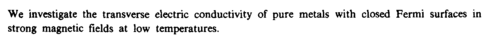 We investigate the transverse electric conductivity of pure metals with closed Fermi surfaces in strong magnetic fields at low temperatures.
