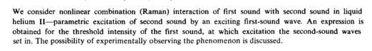 We consider nonlinear combination (Raman) interaction of first sound with second sound in liquid helium II—parametric excitation of second sound by an exciting first-sound wave. An expression is obtained for the threshold intensity of the first sound, at which excitation the second-sound waves set in. The possibility of experimentally observing the phenomenon is discussed.