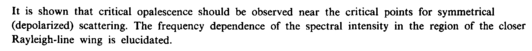 It is shown that critical opalescence should be observed near the critical points for symmetrical (depolarized) scattering. The frequency dependence of the spectral intensity in the region of the closer Rayleigh-line wing is elucidated.