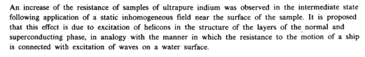 An increase of the resistance of samples of ultrapure indium was observed in the intermediate state following application of a static inhomogeneous field near the surface of the sample. It is proposed that this effect is due to excitation of helicons in the structure of the layers of the normal and superconducting phase, in analogy with the manner in which the resistance to the motion of a ship is connected with excitation of waves on a water surface.