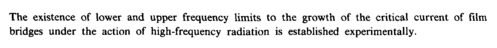 The existence of lower and upper frequency limits to the growth of the critical current of film bridges under the action of high-frequency radiation is established experimentally.