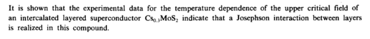 It is shown that the experimental data for the temperature dependence of the upper critical field of an intercalated layered superconductor Cs0 3MoS2 indicate that a Josephson interaction between layers is realized in this compound.