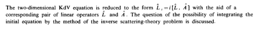 The two-dimensional KdV equation is reduced to the form L, — i[L, A] with the aid of a corresponding pair of linear operators L and A . The question of the possibility of integrating the initial equation by the method of the inverse scattering-theory problem is discussed.