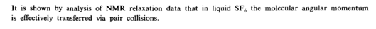 It is shown by analysis of NMR relaxation data that in liquid SF6 the molecular angular momentum is effectively transferred via pair collisions.