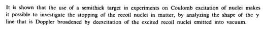 It is shown that the use of a semithick target in experiments on Coulomb excitation of nuclei makes it possible to investigate the stopping of the recoil nuclei in matter, by analyzing the shape of the γ line that is Doppler broadened by deexcitation of the excited recoil nuclei emitted into vacuum.