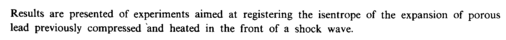 Results are presented of experiments aimed at registering the isentrope of the expansion of porous lead previously compressed and heated in the front of a shock wave.