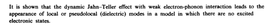 It is shown that the dynamic Jahn-Teller effect with weak electron-phonon interaction leads to the appearance of local or pseudolocal (dielectric) modes in a model in which there are no excited electronic states.