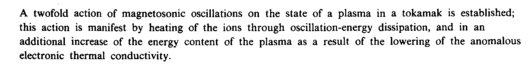 A twofold action of magnetosonic oscillations on the state of a plasma in a tokamak is established; this action is manifest by heating of the ions through oscillation-energy dissipation, and in an additional increase of the energy content of the plasma as a result of the lowering of the anomalous electronic thermal conductivity.