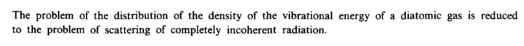 The problem of the distribution of the density of the vibrational energy of a diatomic gas is reduced to the problem of scattering of completely incoherent radiation.
