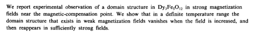 We report experimental observation of a domain structure in Dy3FesO,2 in strong magnetization fields near the magnetic-compensation point. We show that in a definite temperature range the domain structure that exists in weak magnetization fields vanishes when the field is increased, and then reappears in sufficiently strong fields.