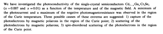 We have investigated the photoconductivity of the single-crystal semiconductors Cdi^Gaj-C^Se, (x =0.007 and χ =0.01) as a function of the temperature and of the magnetic field. A minimum of the photocurrent and a maximum of the negative photomagnetoresistance was observed in the region of the Curie temperature. Three possible causes of these extrema are suggested: 1) capture of the photoelectrons by magnetic polarons in the region of the Curie point; 2) scattering of the photoelectrons by magnetic polarons; 3) spin-disordered scattering of the photoelectrons in the region of the Curie point.